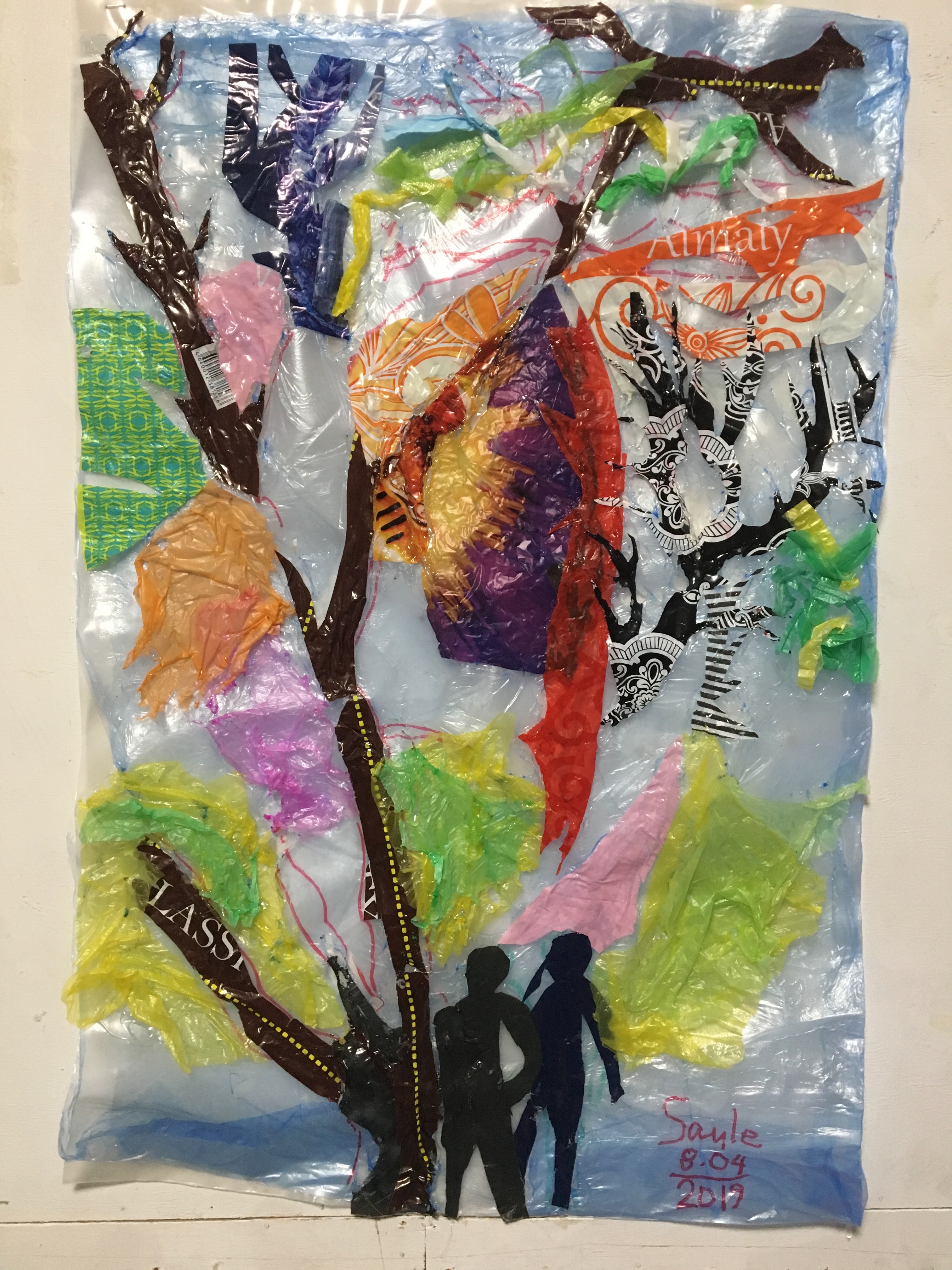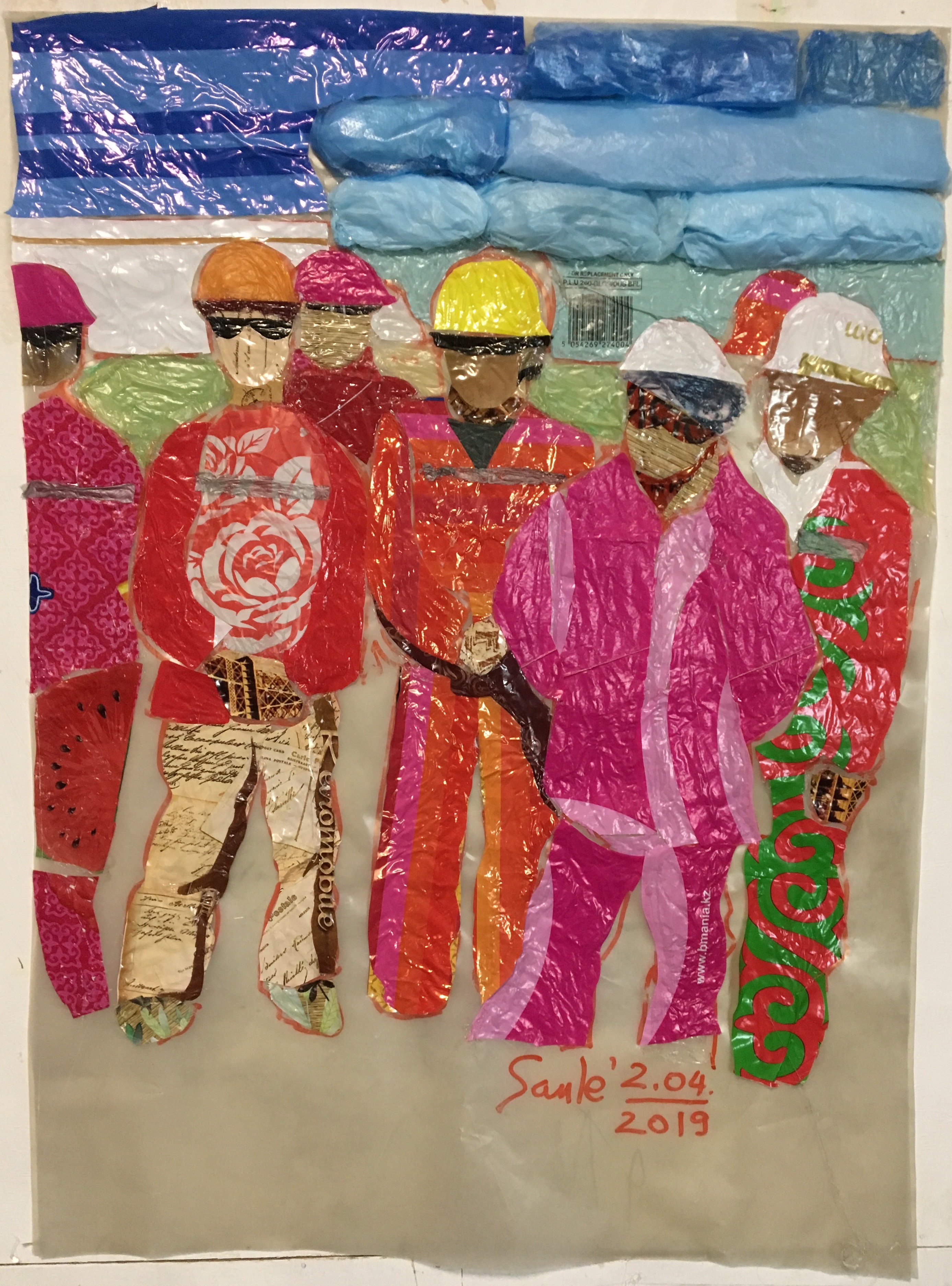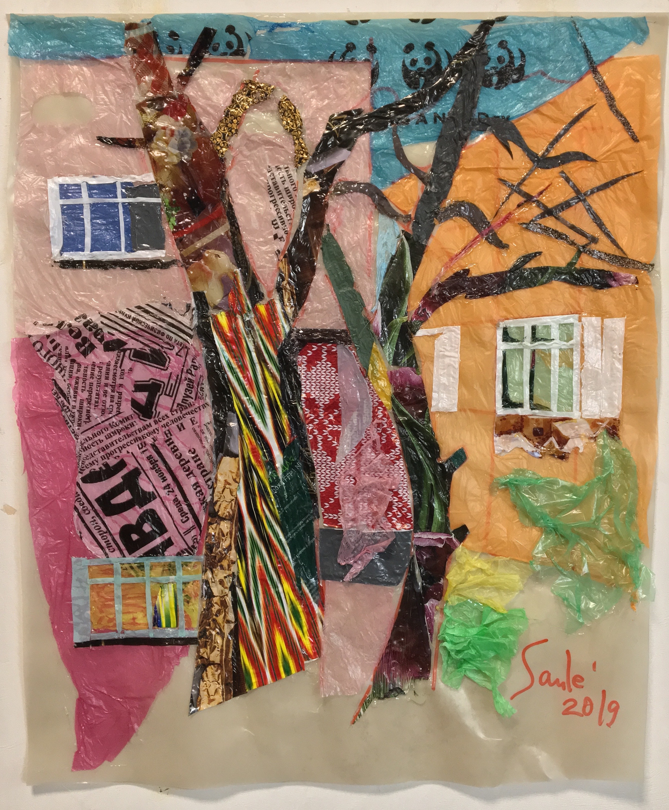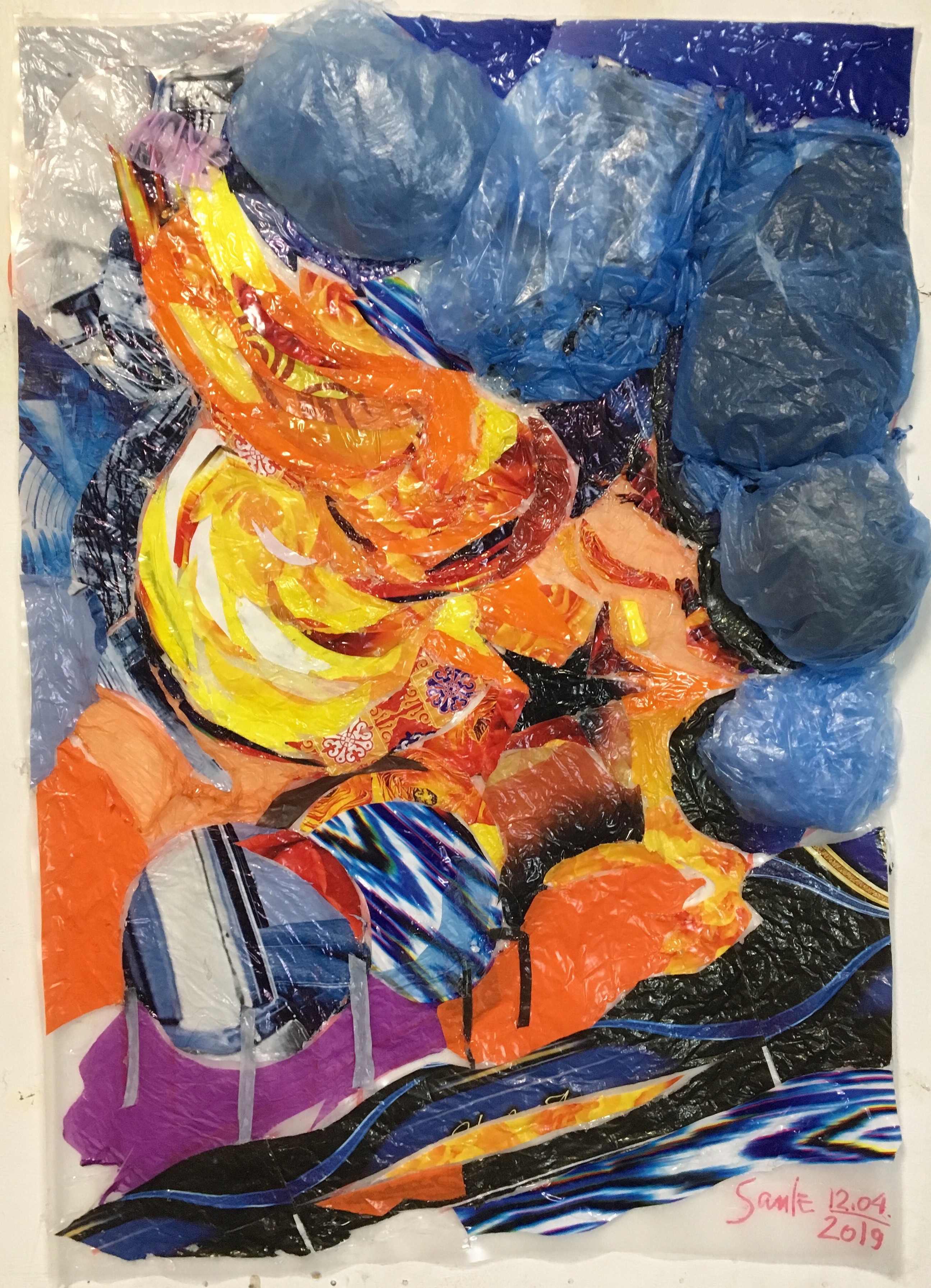 The first day. View from my window. Plastic bags, polyethylene. 70×56 cm. April 1, 2019.April 2, 2019 – the strike of oil workers in Aktau. Plastic bags, polyethylene. 70×56 cm. April 2, 2019.April 3, 2019 Trial of Svetlana Glushkova. Svetlana’s face is a mirror. Plastic bags, polyethylene, mirror. 50×62 cm. April 3, 2019.April 4, 2019 Blooming apricot and security officers. Plastic bags, polyethylene. 50×70 cm.April 5, 2019. The first tulip through the netting netting in a neighboring yard. Plastic bags, polyethylene. 70×54 cm.Diary of changes. April 8, 2019. The construction of the GLK on Kok Zhailau has been postponed. Plastic bags, polyethylene. 70×56 cm. #plasticdiaryofchanges #sauleplastickundelikRain. You are the choice. Plastic bags, polyethylene. 56×70 cm. April 10, 2019.Diary of changes. NPP in Kazakhstan. Russia invited Kazakhstan to build a nuclear power plant near Lake Balkhash. At the same time, everyone has a fresh disaster at the Fukushima nuclear power plant. There is no nuclear power plant in Kazakhstan! Plastic bags, polyethylene. 70×50 cm. April 12, 2019. # netaeskvazakhastane #plasticdiaryofchanges #sauleplastickundelik #city codeDiary of changes. Ulken. Balkhash. The authorities called the village of Ulken in the Almaty region as a likely place for the construction of a nuclear power plant. April 16, 2019. Plastic bags on polyethylene. 43×61 cm #netaesvkazahastane #plasticdiaryofchanges #sauleplastickundelik #notrdamdepari #azattyk #petrotsenko #city codeQazaq Kóktemi. 2019 plastic bags, polyethylene. 75×94 cm #plasticdiaryofchanges #sauleplastickundelik #qazaqkoktemi #qazaqkóktemi #adilsailayushin #menoyandym