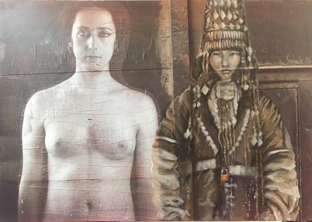 from the series kazakh chronicle, 2014, painting on photography, 100 x 140 cm